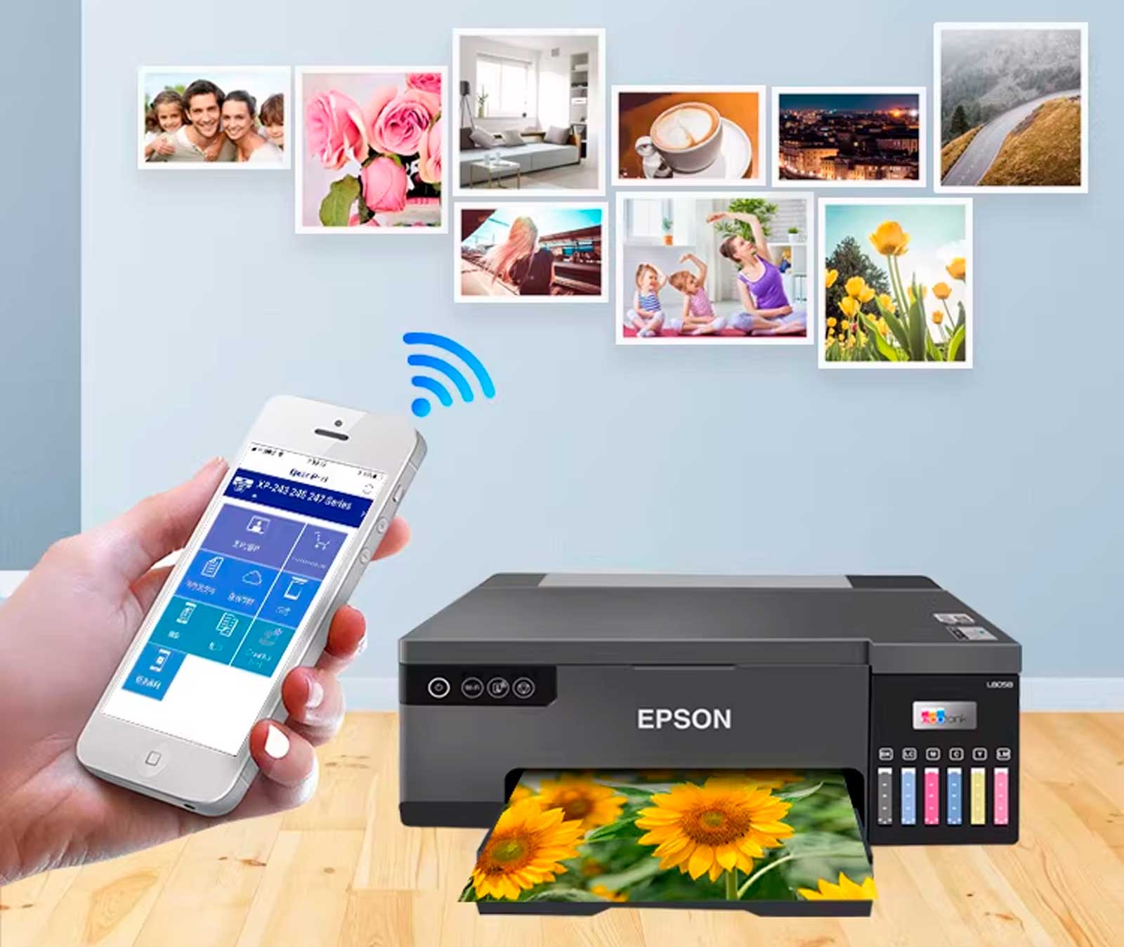 L8050 позволяет печатать с мобильных устройств, планшетов и ноутбуков. Благодаря поддержке Wi-Fi и Wi-Fi Direct документы можно отправлять на печать со смарт-устройств с помощью приложения Epson Smart Panel.