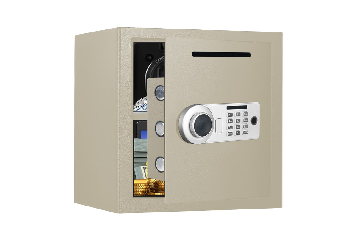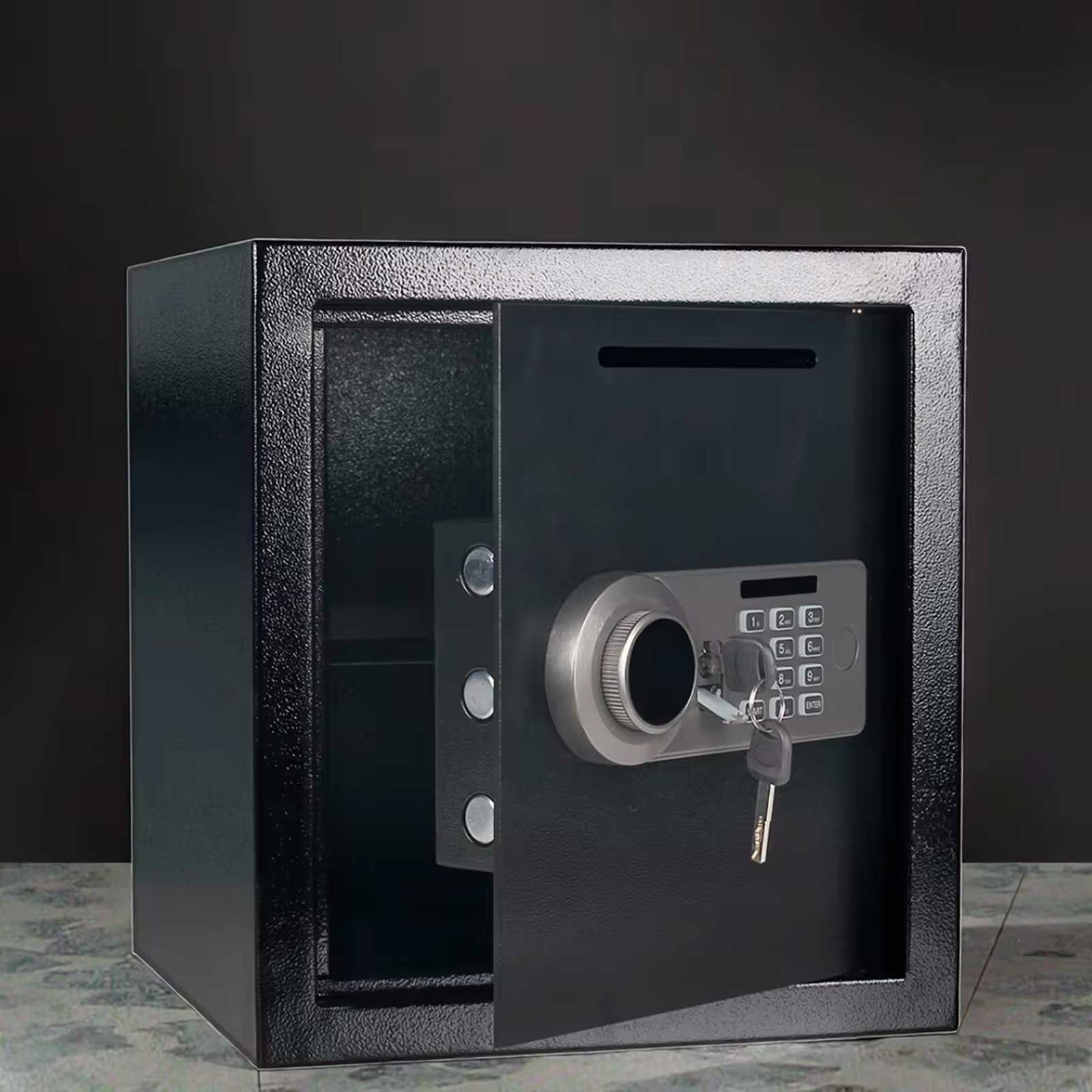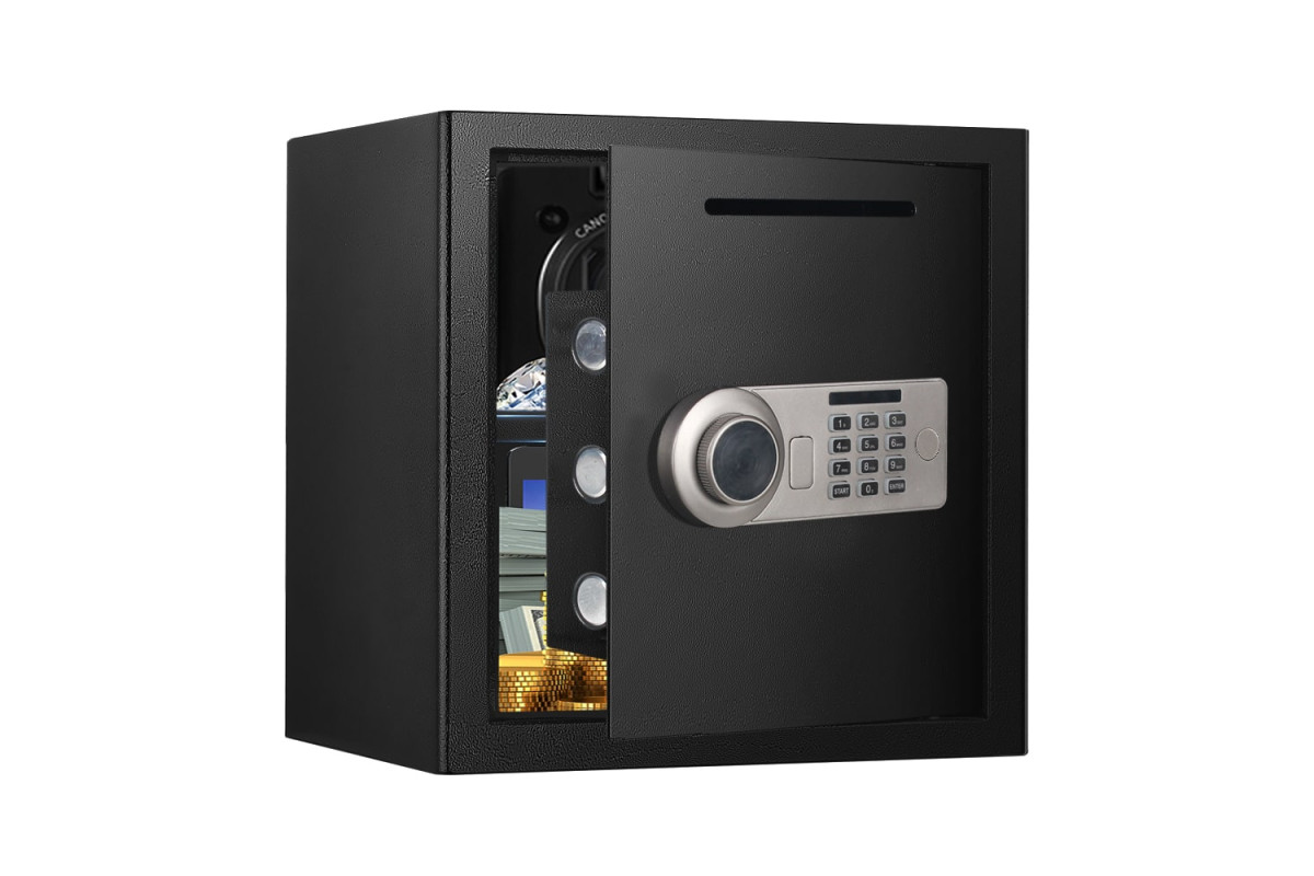 Мини-сейф изготовлен из усиленной стали с прочными стенками. Двойные запорные стальные болты и покрытие, устойчивое к коррозии и загрязнениям, обеспечивают долговечность и безопасность сейфа.