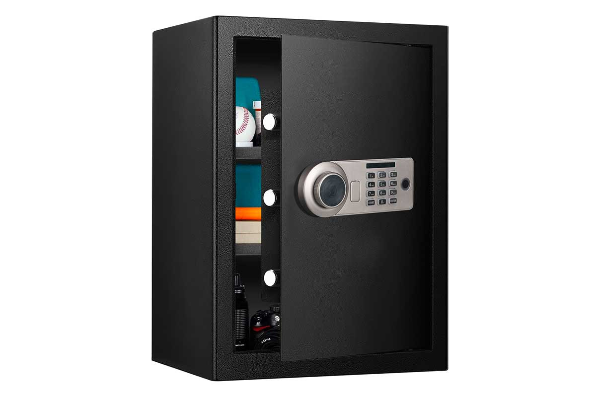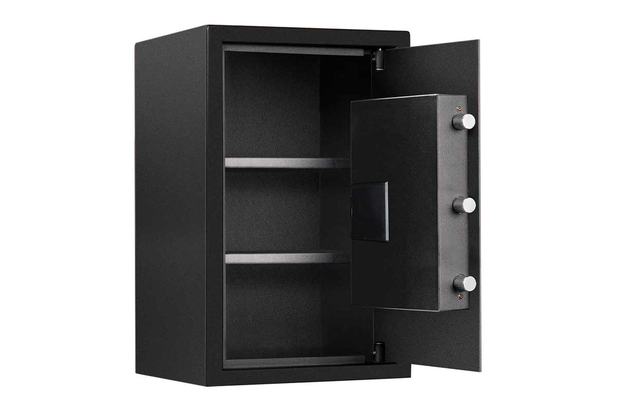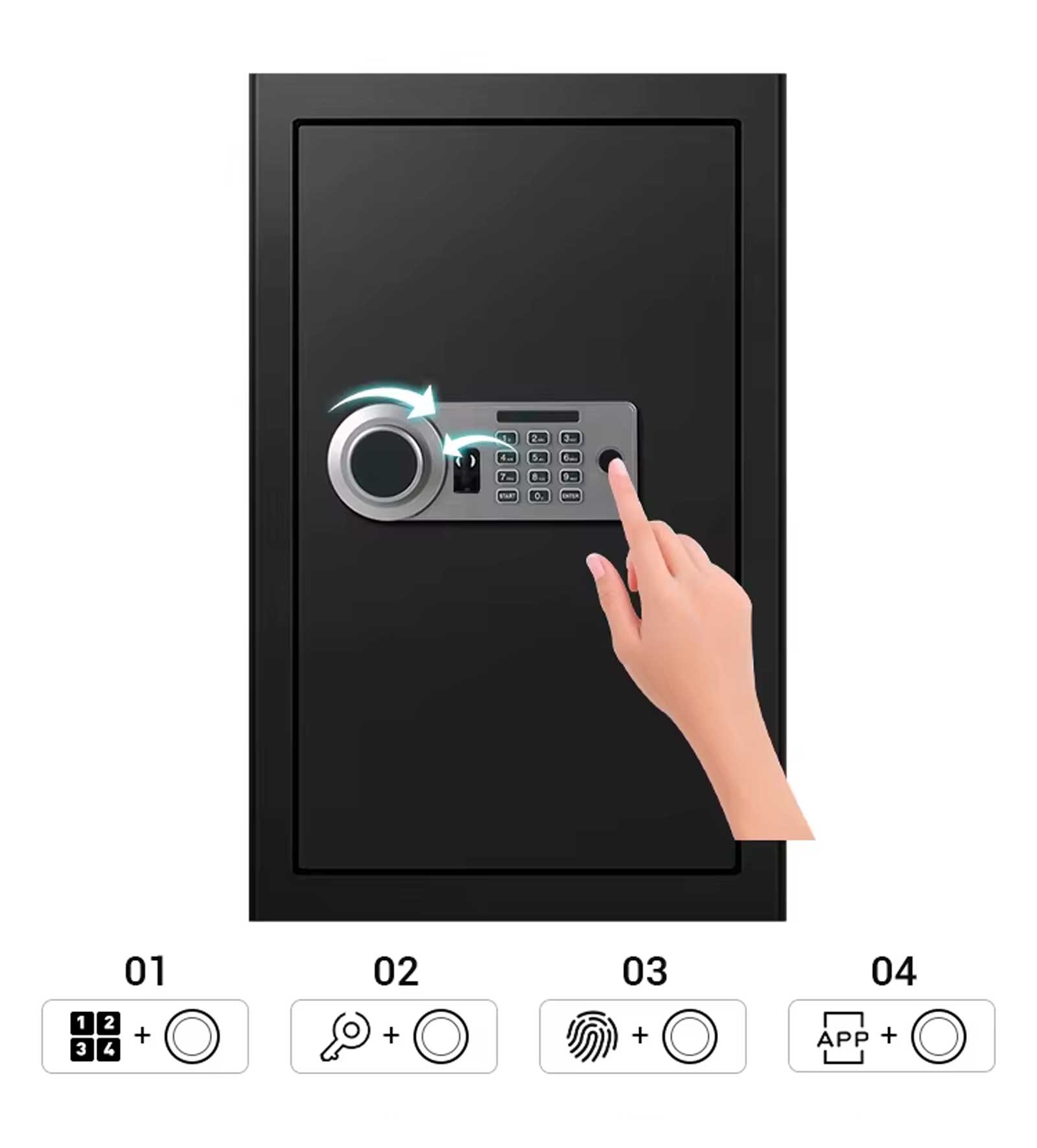 Сейф оснащён множеством систем безопасности: сканером отпечатков пальцев, механическим кодовым замком, ключевым замком и интеллектуальной системой управления через мобильное приложение. Такая комбинация технологий обеспечивает