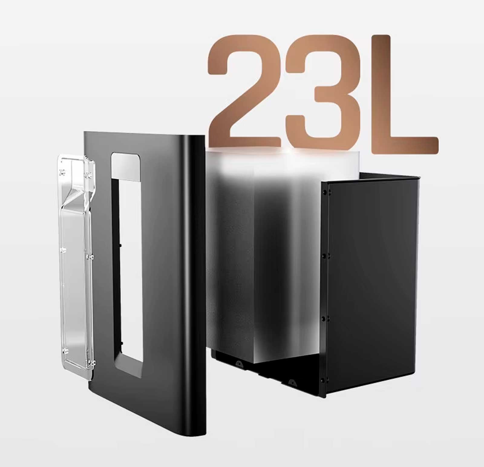 Шредер оснащён 23-литровым мусорным ведром с прозрачным окошком для контроля уровня заполнения