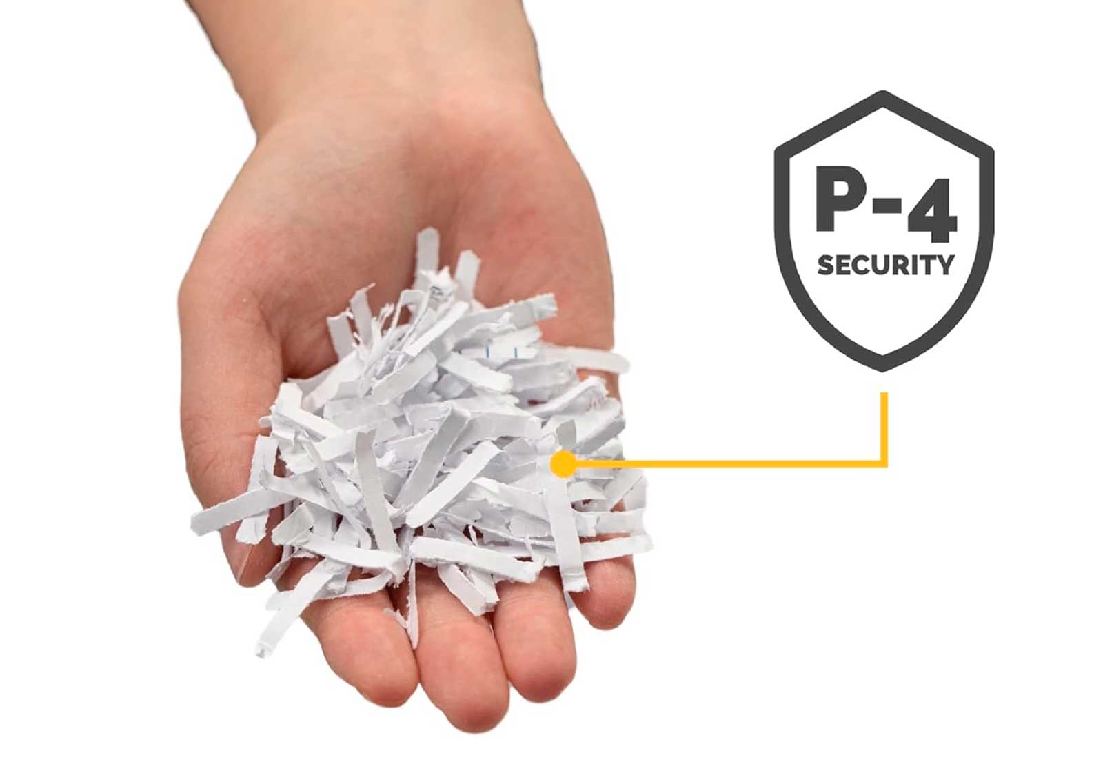 соответствует высокому уровню секретности P-4 по международному стандарту безопасности DIN. Такой способ уничтожения идеально подходит для конфиденциальной информации: банковских выписок, договоров, медицинских документов и других
