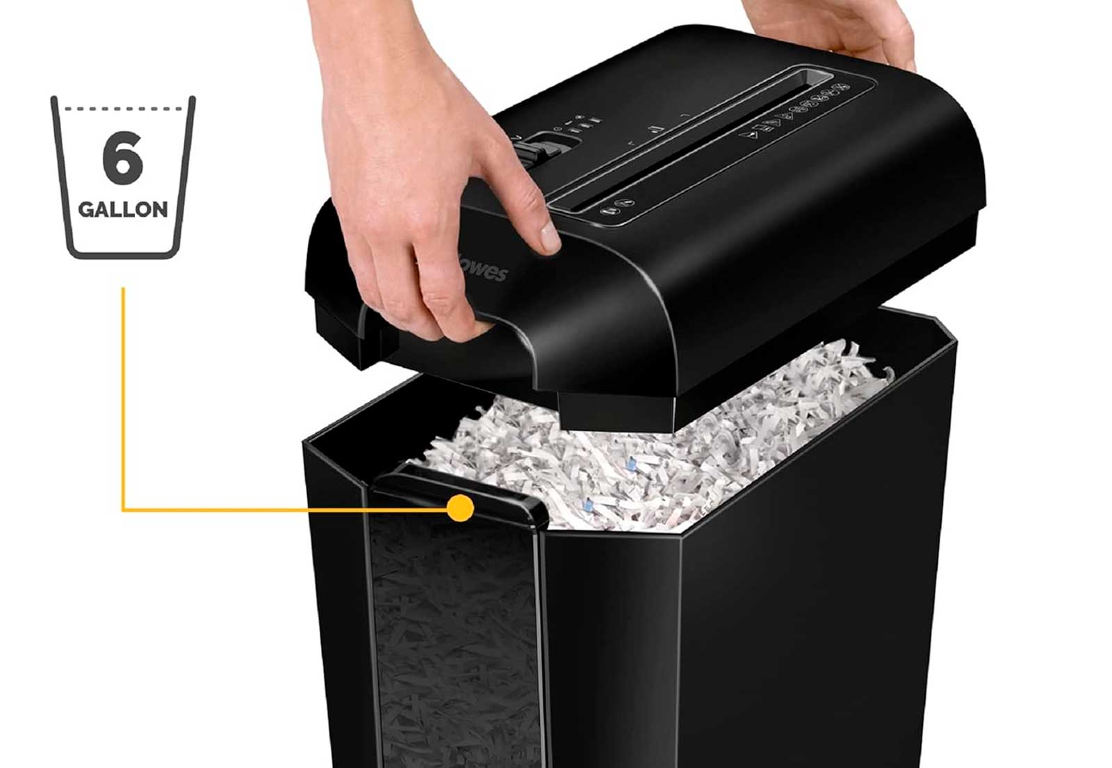 Шредер оснащён 22-литровым мусорным ведром с прозрачным окошком для контроля уровня заполнения. Чтобы очистить контейнер — просто снимите верхнюю часть устройства.