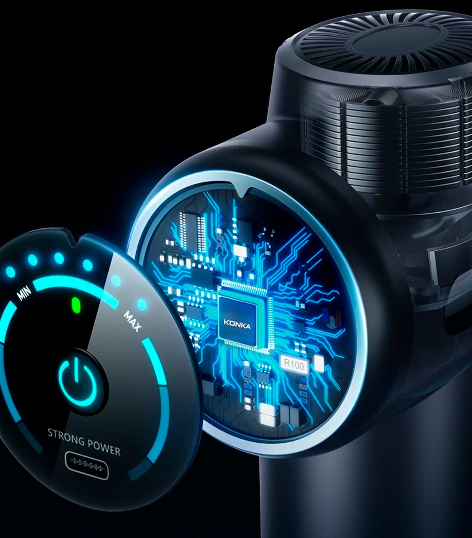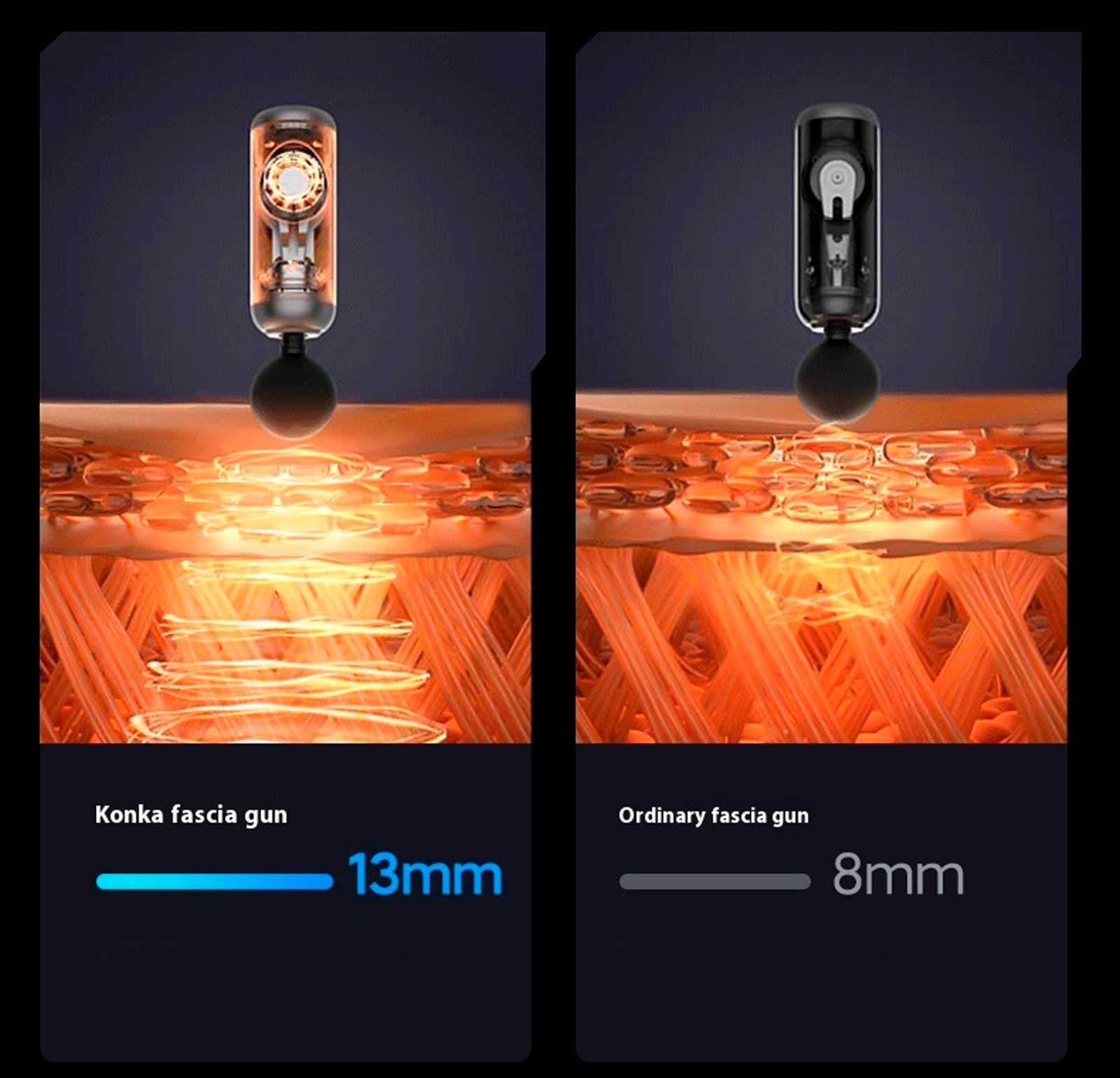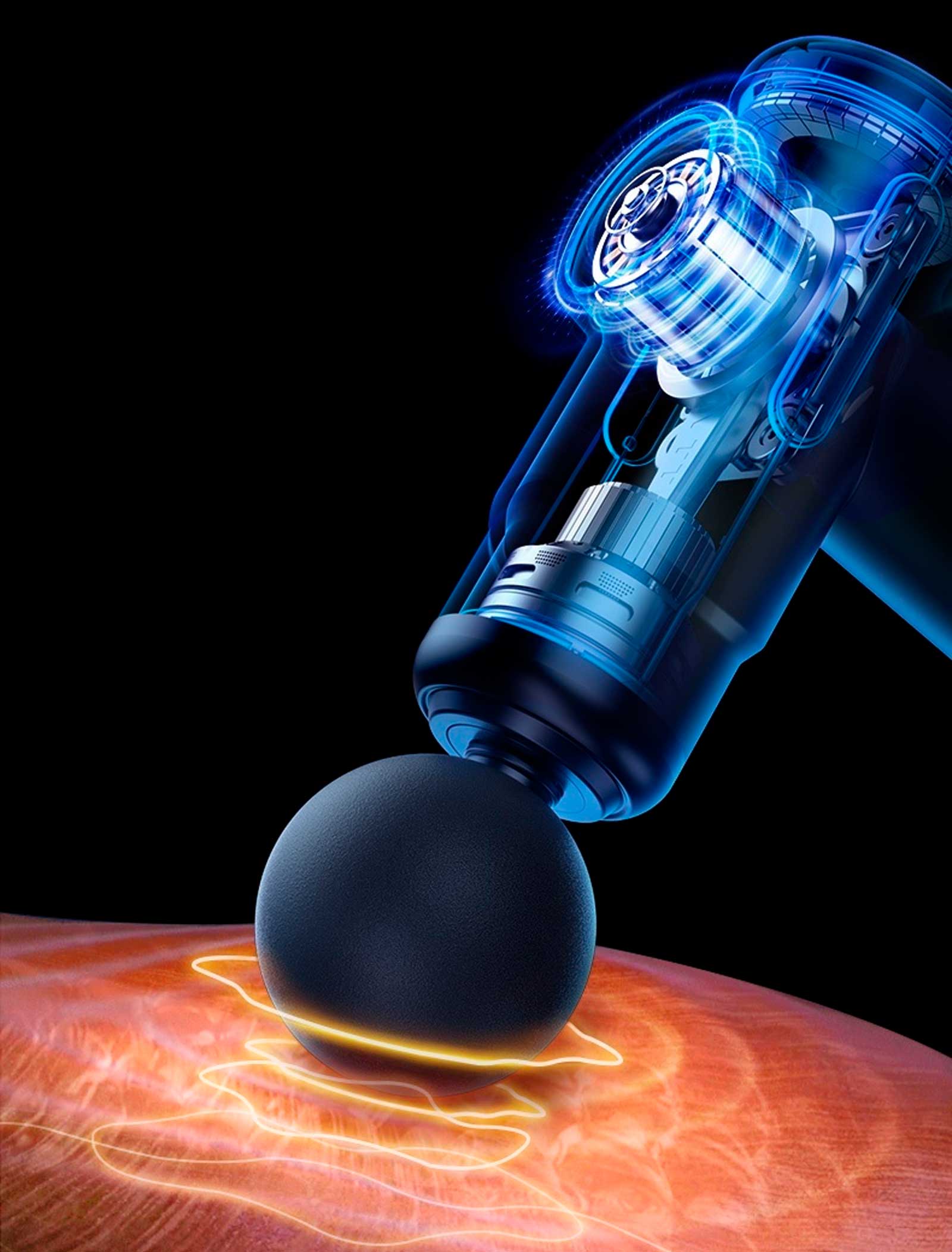 Сверхвысокочастотные удары, мощность проникает глубоко в мышечную группу и достигает фасциального слоя, сметая усталость и боль.