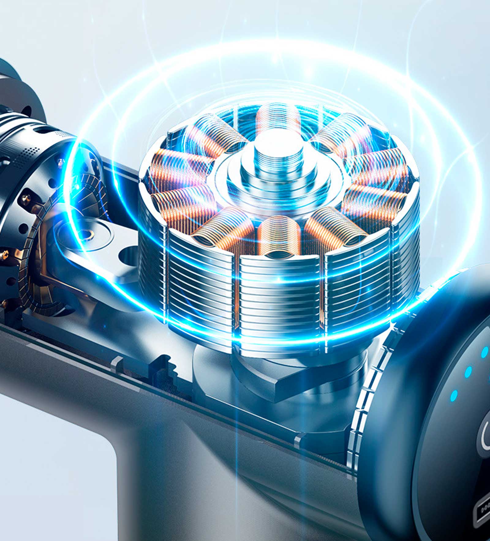 Встроенная система обратной связи по давлению автоматически регулирует скорость двигателя и выходную мощность в зависимости от силы нажатия при массаже, делая процесс более персонализированным и умным.